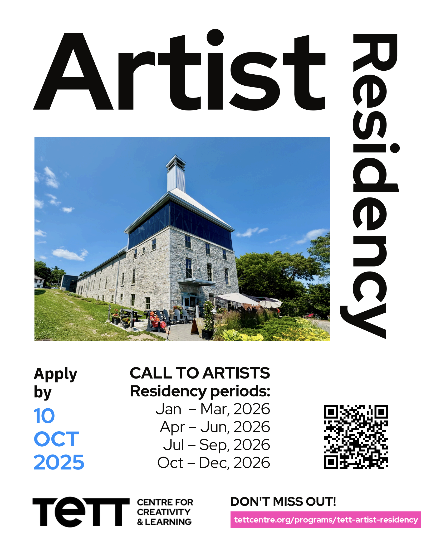 Tett Centre for Creativity & Learning is excited to announce that applications are now open for the 2026 Tett Artist Residency Program. Now in its third year, this program supports Katarokwi/Kingston-based emerging artists by providing three months of dedicated studio space with unlimited access, fostering an environment for sustained creative exploration.